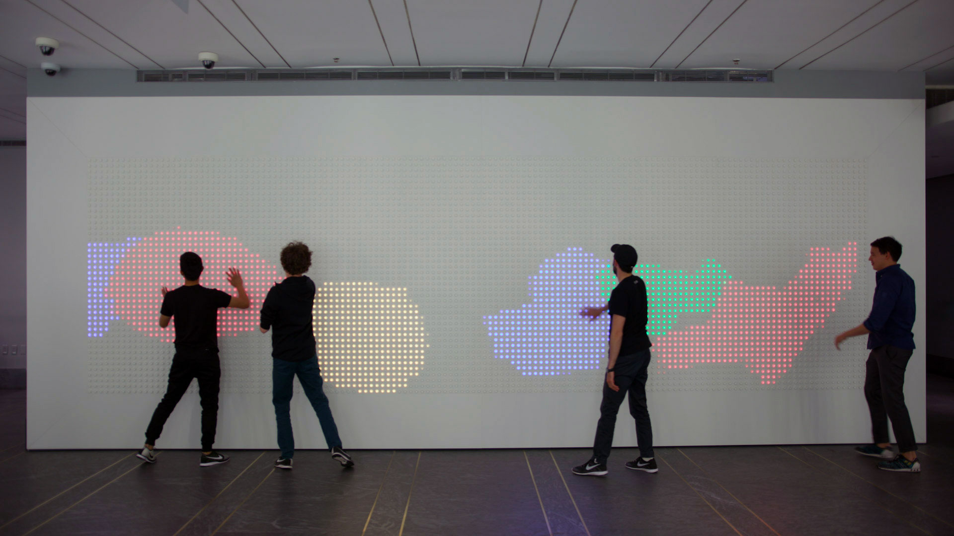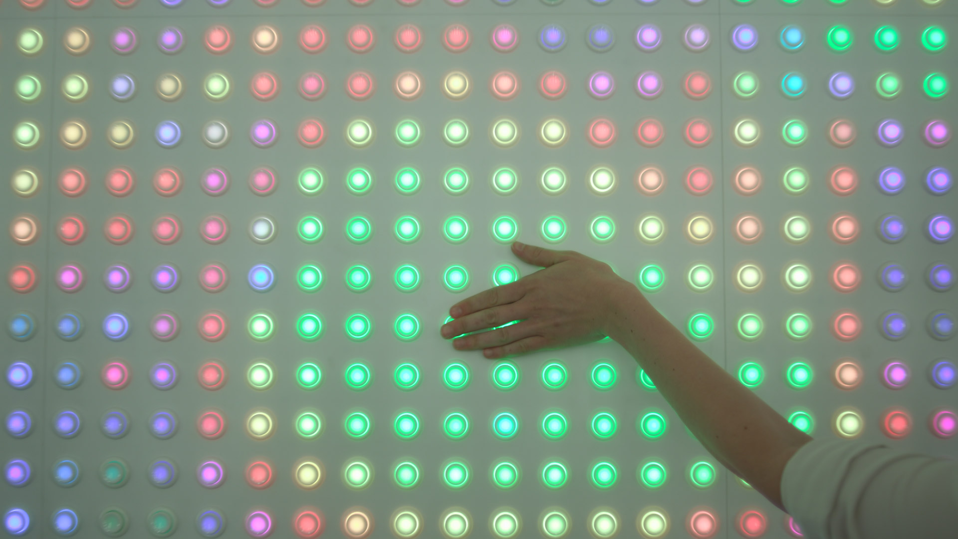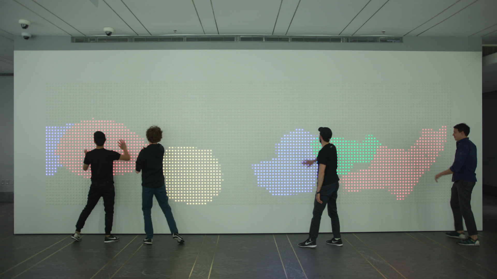 What made the lobby installation compelling was the social dimension. The wall lives in a public lobby. Strangers press buttons next to each other. Games emerge spontaneously. The display becomes a shared canvas with no single person in control. To this day it brings me such joy when I walk in to work and see others playing with it.