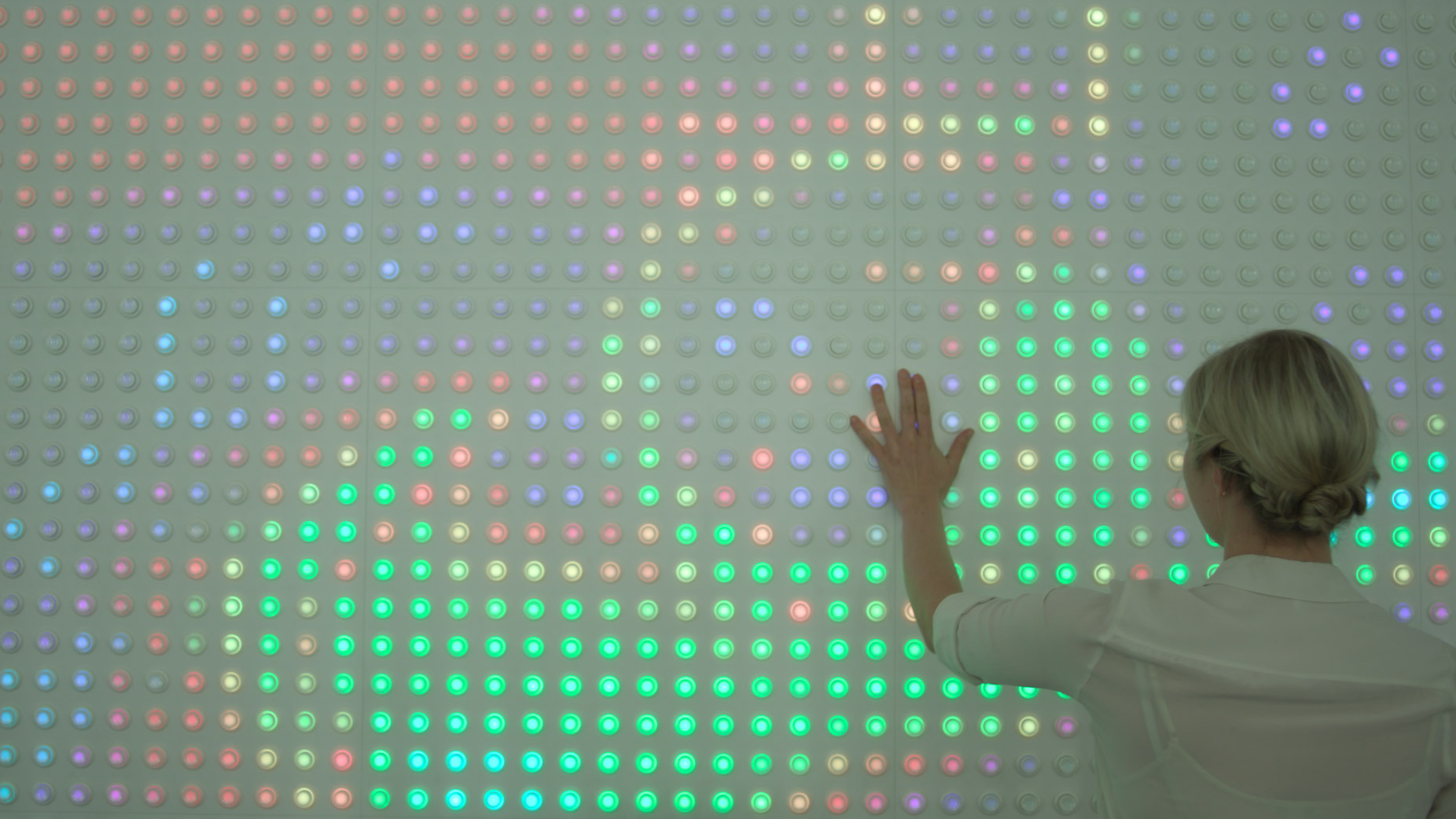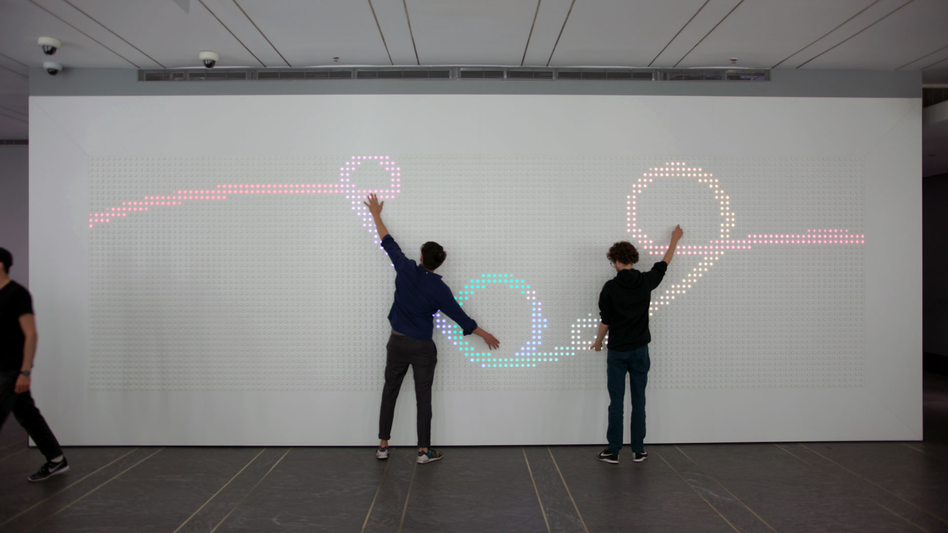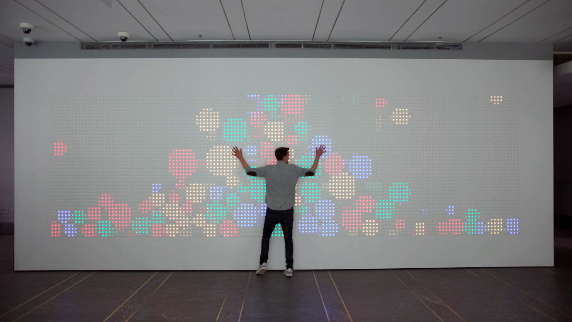 What made the lobby installation compelling was the social dimension. The wall lives in a public lobby. Strangers press buttons next to each other. Games emerge spontaneously. The display becomes a shared canvas with no single person in control. To this day it brings me such joy when I walk in to work and see others playing with it.